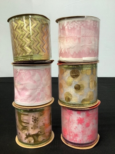 Box of 6 Rolls of Wired Christmas Ribbon