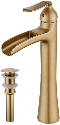 Wovier Brushed Gold Single Handle Waterfall Bathroom Sink Faucet w/ Supply Hoses and Drain