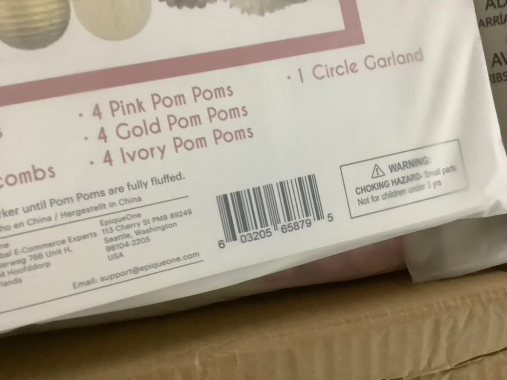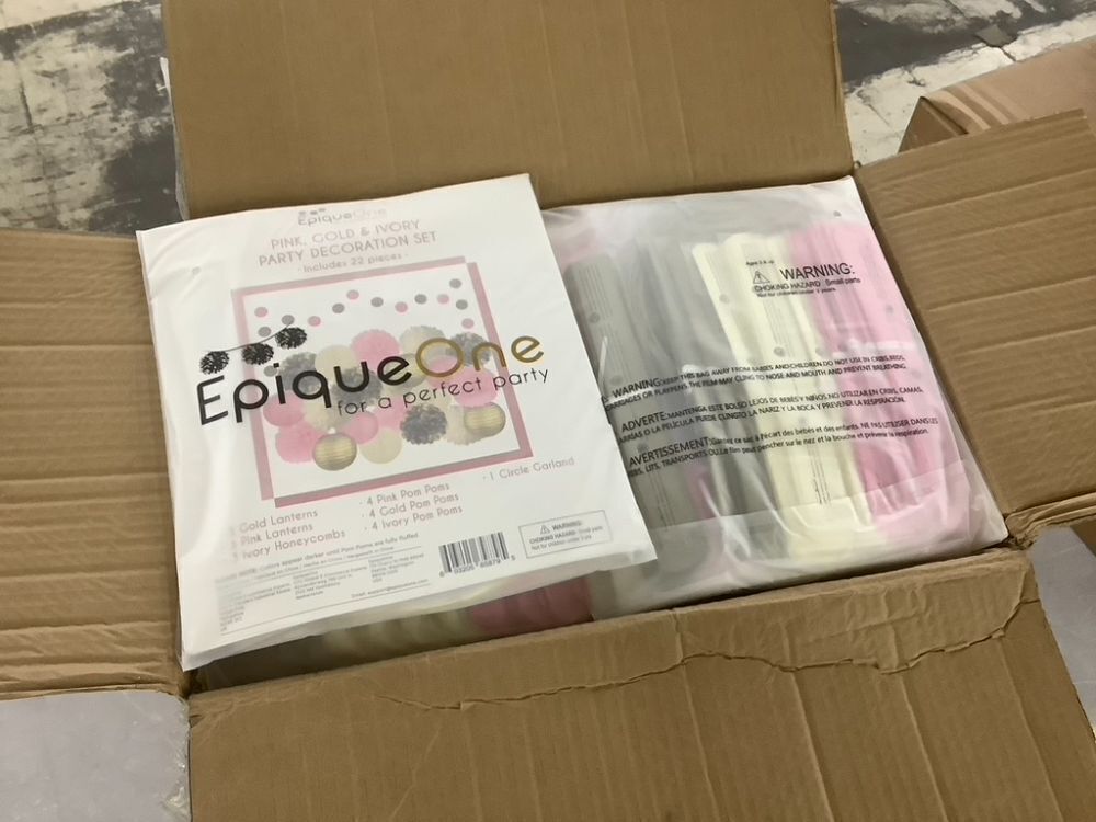 Case of (36) EpiqueOne 22-Piece Tissue Paper Pom Poms Party Set - Pink, Gold & Ivory