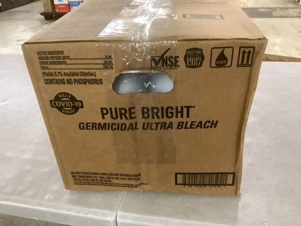 Case of (6) Pure Bright 1 Gallon Liquid Bleach