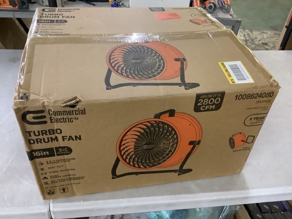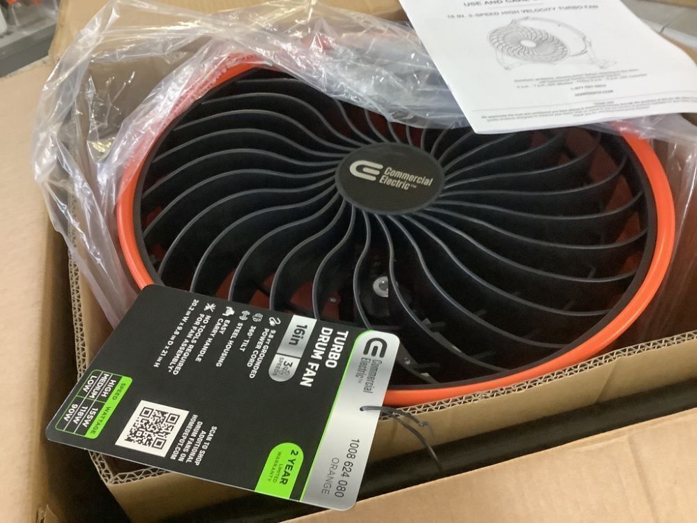 Commercial Electric 16 in. 3-Speed Drum Floor Fan in Orange High Velocity Turbo