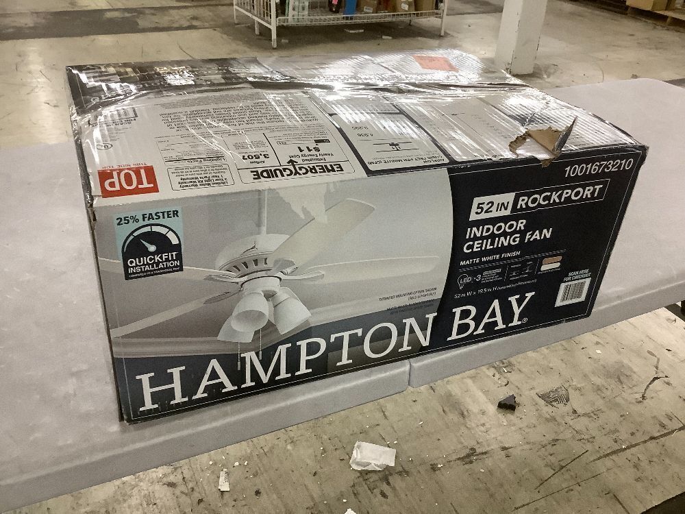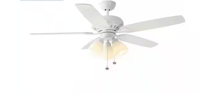 Hampton Bay Rockport 52 in. Indoor LED Matte White Ceiling Fan with Light Kit, Downrod, Reversible Blades and Reversible Motor