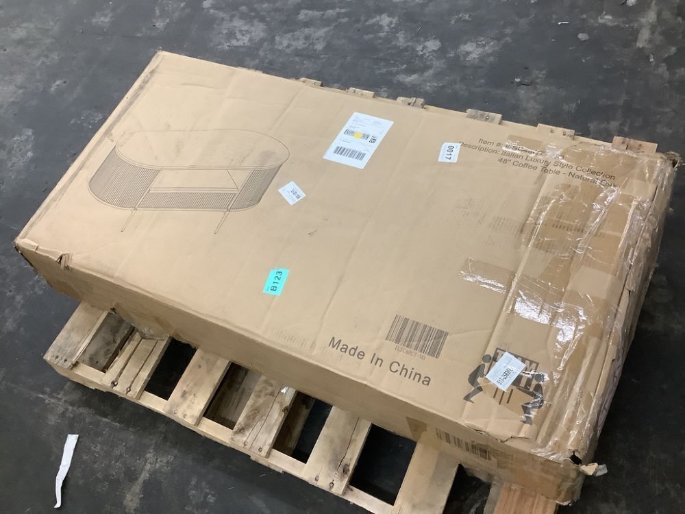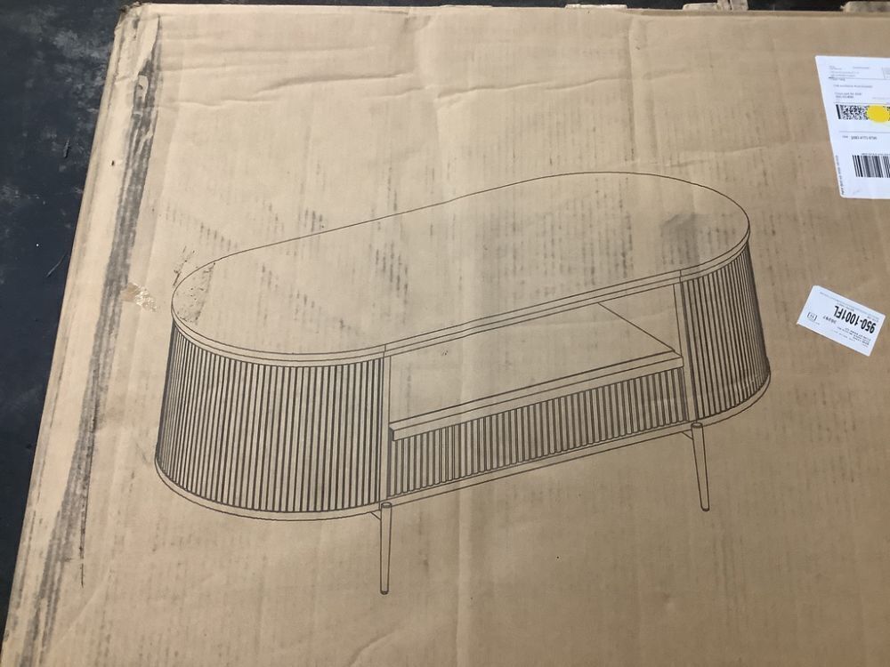 OKD Fluted 48" Oval Coffee Table with Drawer, Faux Marble Top, Natural Oak