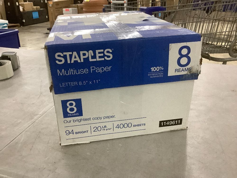 Staples 8.5" x 11" Multipurpose Paper 20lb 94 Brightness, 4000 Sheets