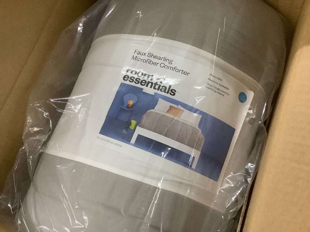 Room Essentials Faux Shearling Washed Microfiber Reversible Comforter, Full/Queen