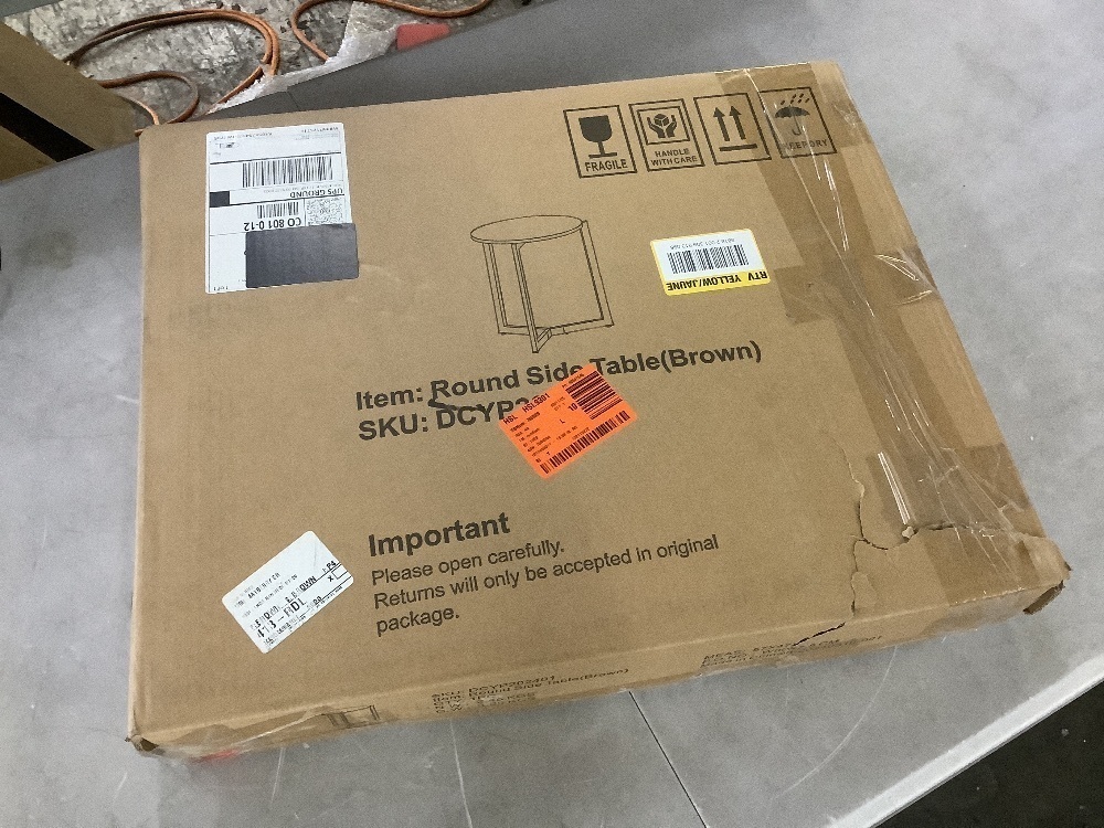 Angel Sar 19.68 in. Round Outdoor Accent End Table with Sturdy Metal Frame, Brown