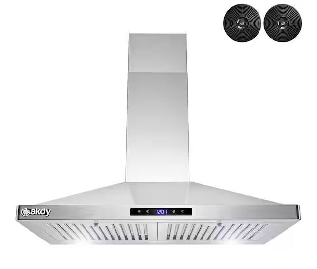 AKDY 30 in. Convertible Kitchen Wall Mount Range Hood in Stainless Steel with LEDs, Touch Control and Carbon Filters
