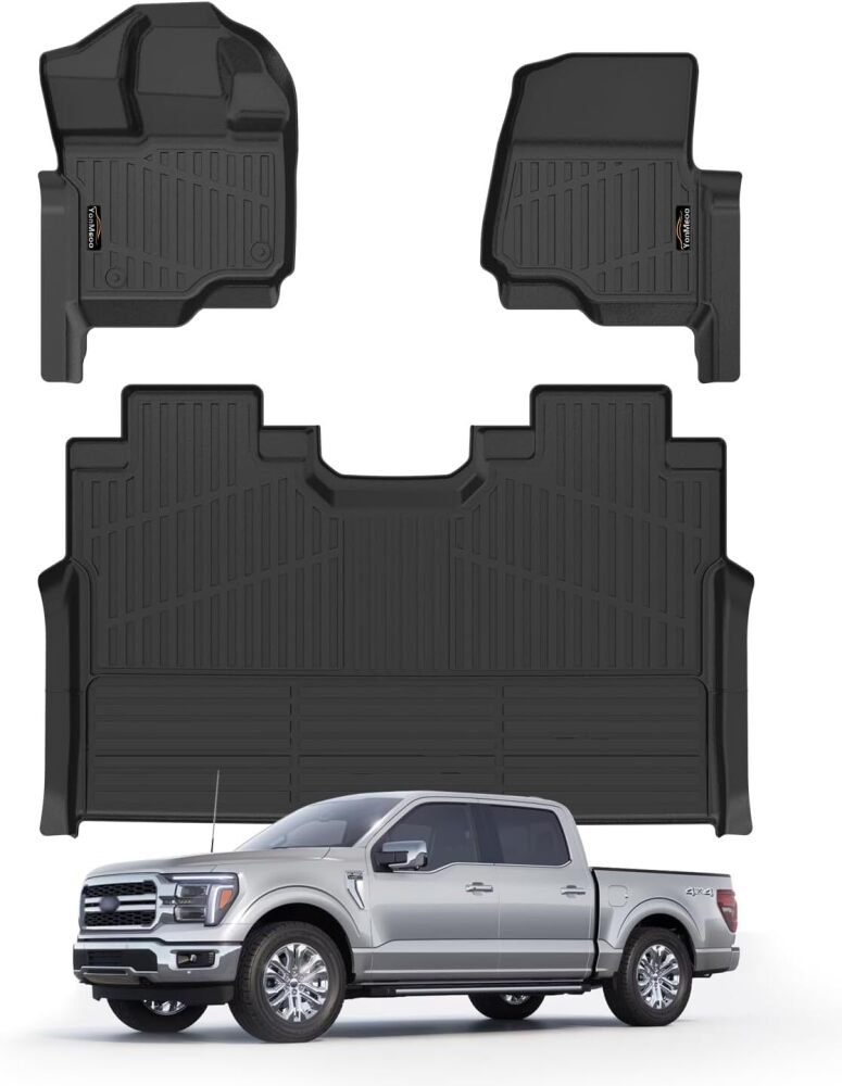 Floor Mats Custom Fit for Ford F150/F-150 2025 2015-2024 SuperCrew Cab (Includes 22-24 Lightning Models) All Weather TPE Rubber Floor Liners Anti-Slip Full Set for Ford F-150 2025 Accessories