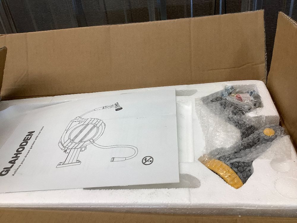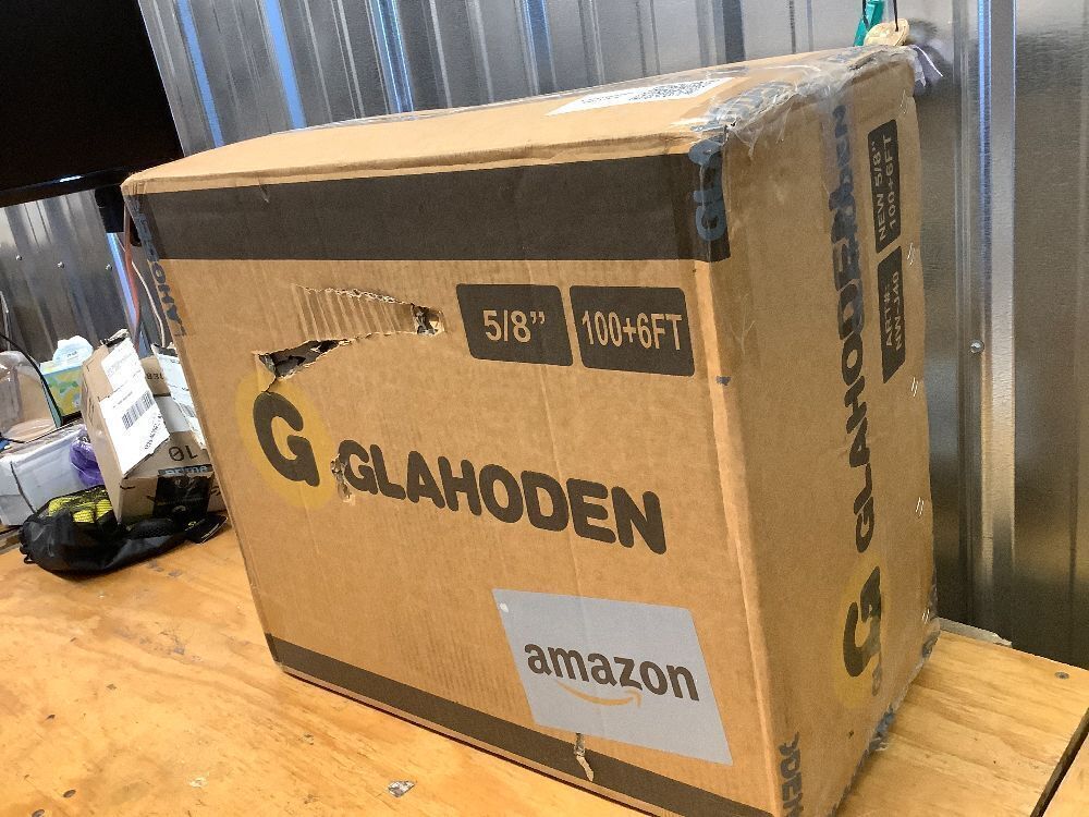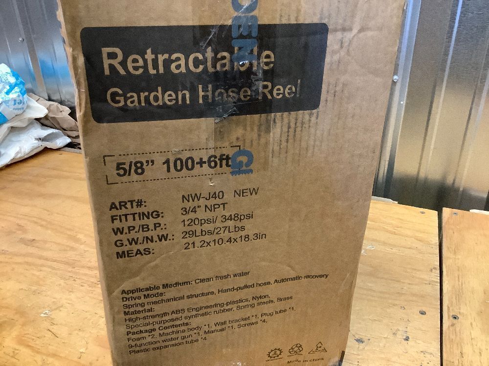 GLAHODEN Retractable Garden Hose Reel 5/8 in x 100 ft Upgraded UV Resistant Heavy Duty Automatic Hose Reel Wall Mount 3/4 in Brass Fitting 9 Pattern Nozzle Any Length Lock Slow Retraction 180° Swivel