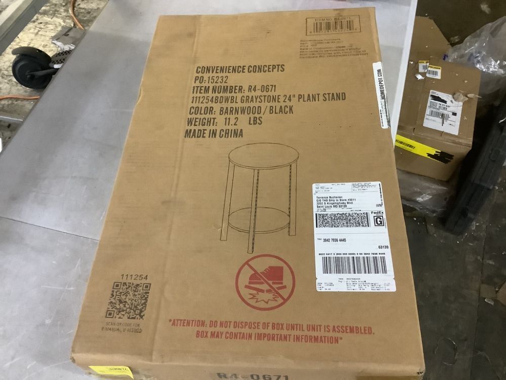 Convenience Concepts Graystone 23.75 in. H Barnwood/Black Low Round Particle Board Indoor Plant Stand with 2-Tiers