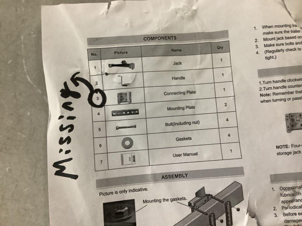 VEVOR Heavy Duty Swivel Bolt-on Trailer Jack, 5000 lbs. Dynamic Load Capacity, 14.3 in. Lift - Missing Connecting Plate