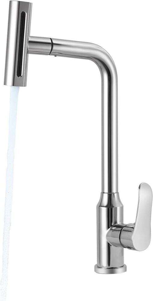 Waterfall Kitchen Faucet with Pull-Out Sprayer with 4 Modes Sprayer, Stainless Steel 360° Swivel Kitchen Sink Faucet, High Arc Single Hole Sink Faucet (Silvery)