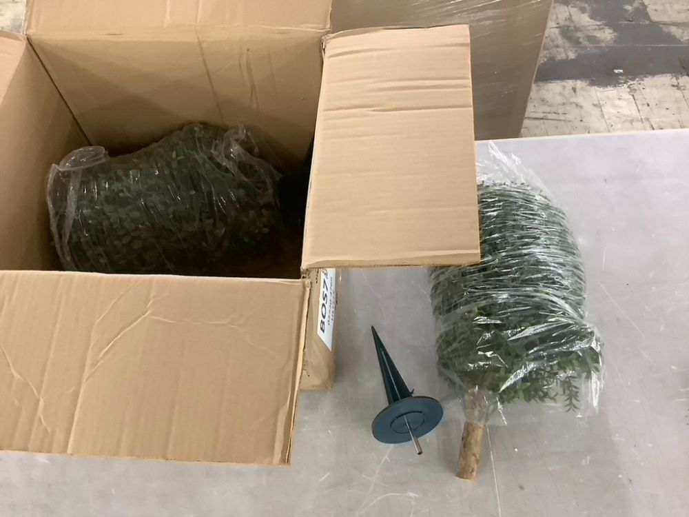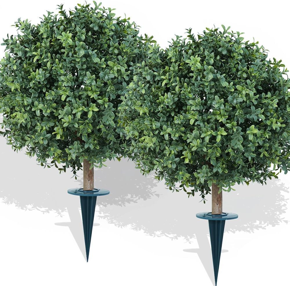 26" Artificial Boxwood Topiary Ball Tree with Ground Spike, Set of 2
