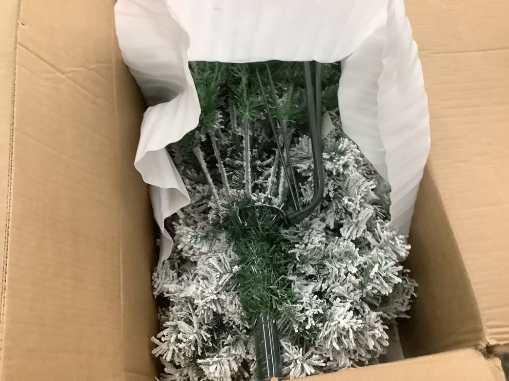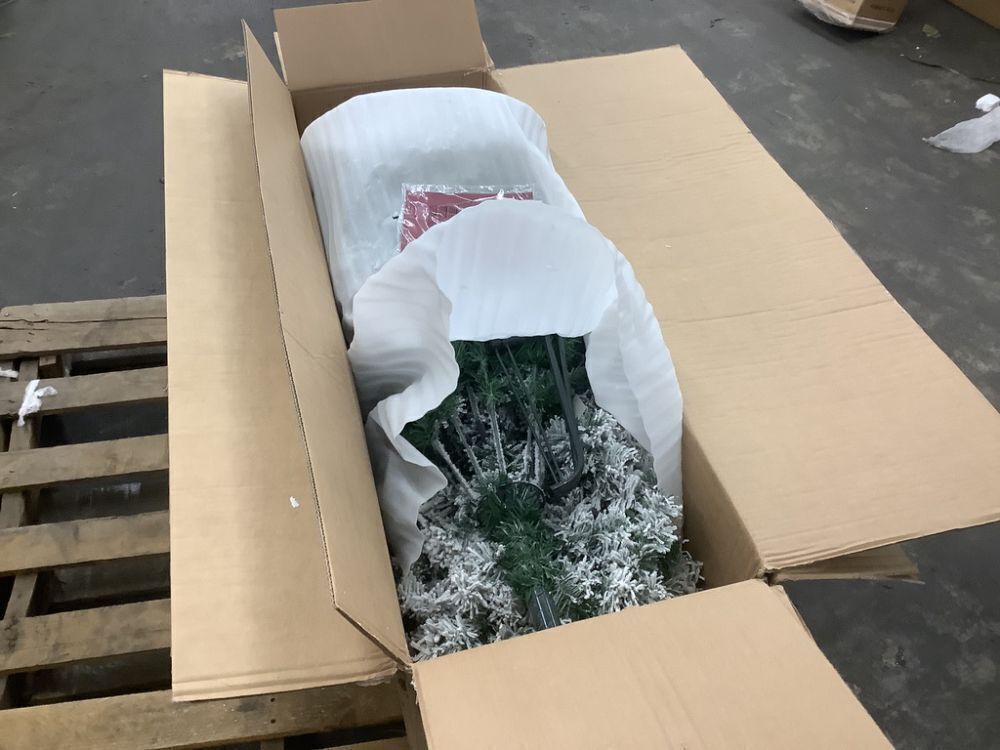 7.5' Pre-Lit Snow Flocked Artificial Pine Christmas Tree w/ Warm White Lights