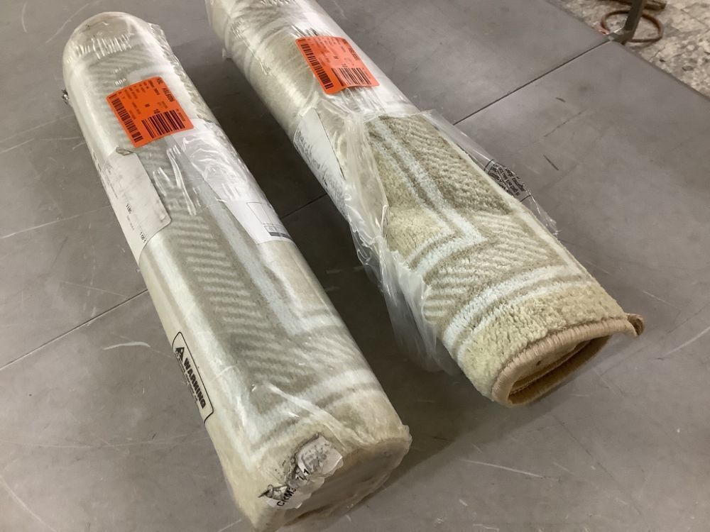 Lot of (2) Beige Carmel Bordered Non Slip Runner Indoor Runner Rug 2' x 5'