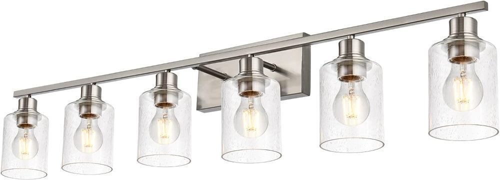 6 Light Brushed Nickel Wall Lighting with Seeded Glass Shade