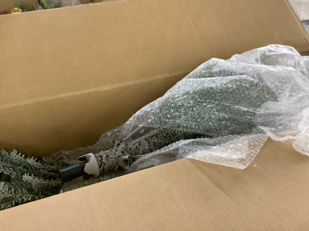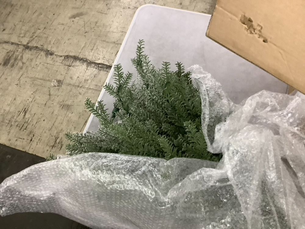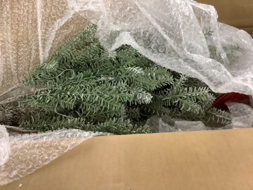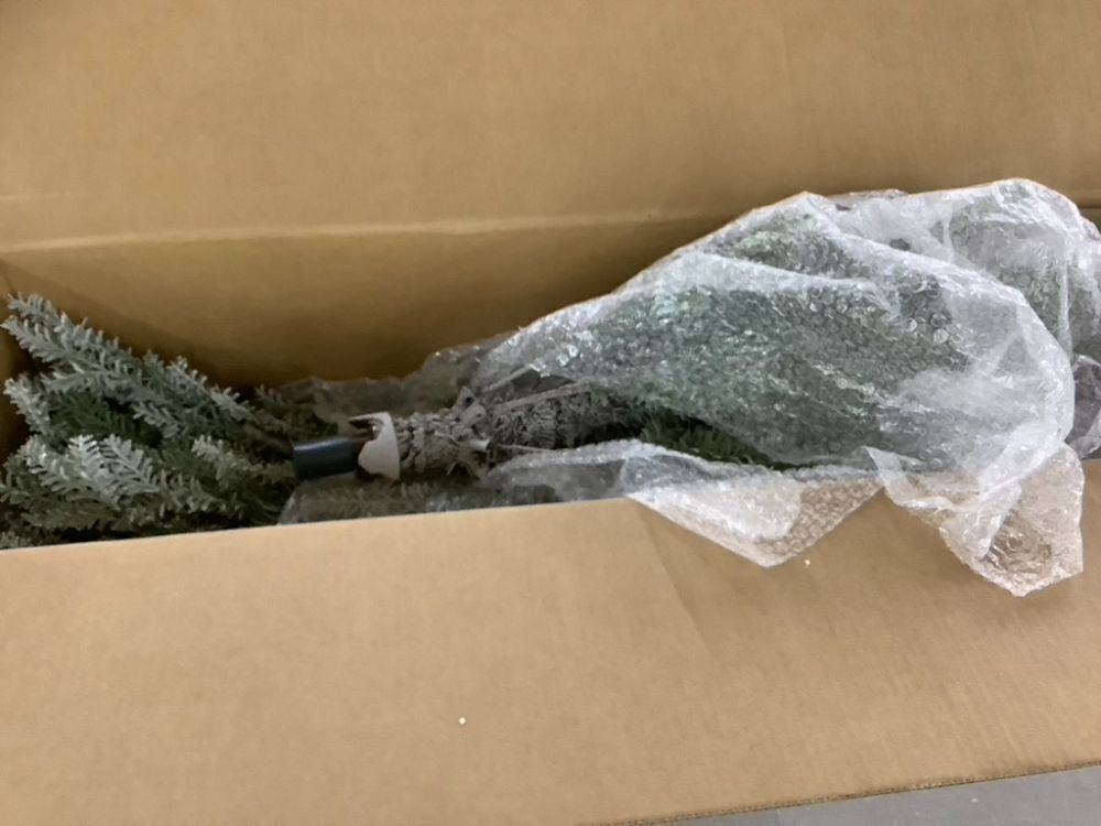 7.5' Green Pre-Lit Sparse Flocked Christmas Tree w/ 2-in-1 LEDs, Cordless Connection