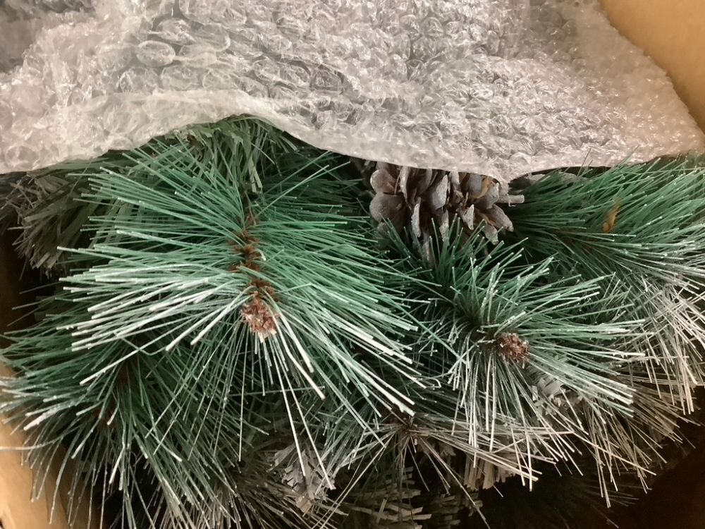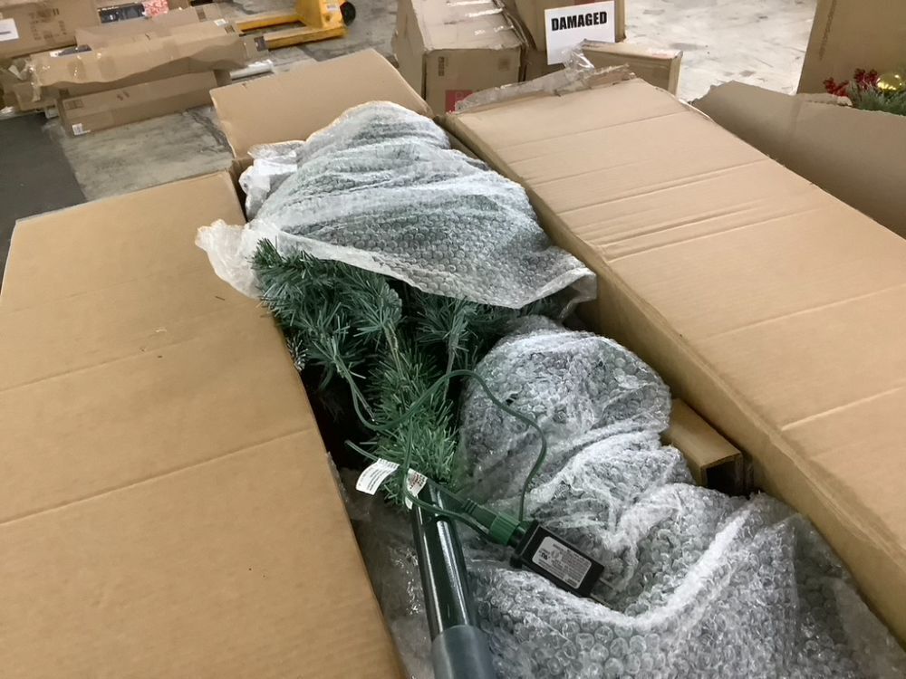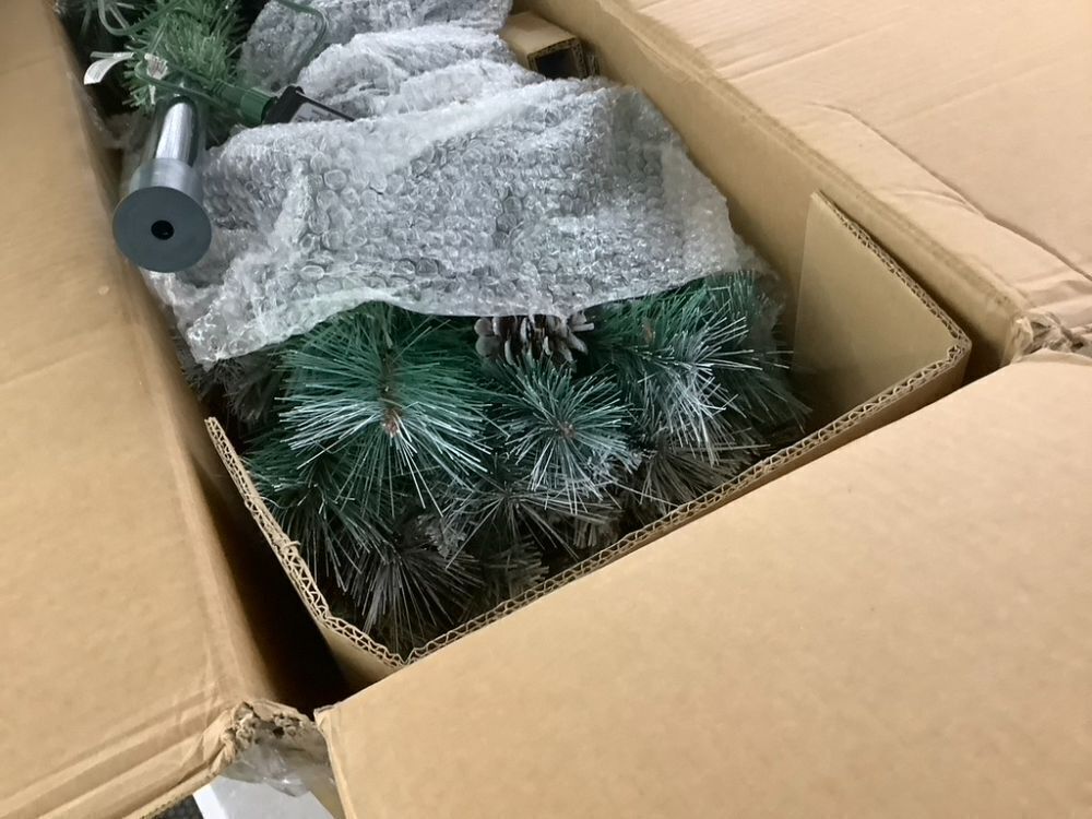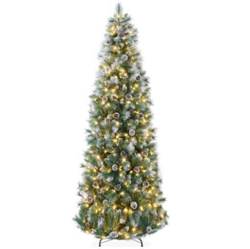 7.5' Pre-Lit Artificial Frosted Scotch Pine Pencil Christmas Tree w/ Metal Stand