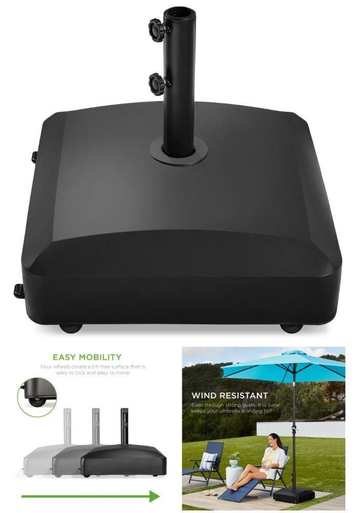 REFILLABLE RESERVOIR & TIGHTENING KNOBS: 2-fold stability system uses a pair of tightening knobs to ensure a secure fit while the fillable base holds up to 123.2 pounds of sand or 37 liters of water.