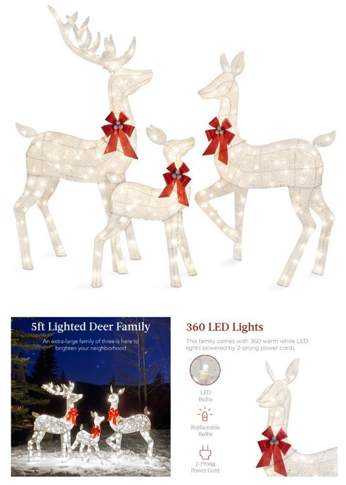 3-PIECE SET: Light up your front yard and celebrate the winter months with a glowing deer family consisting of a buck, doe, and fawn