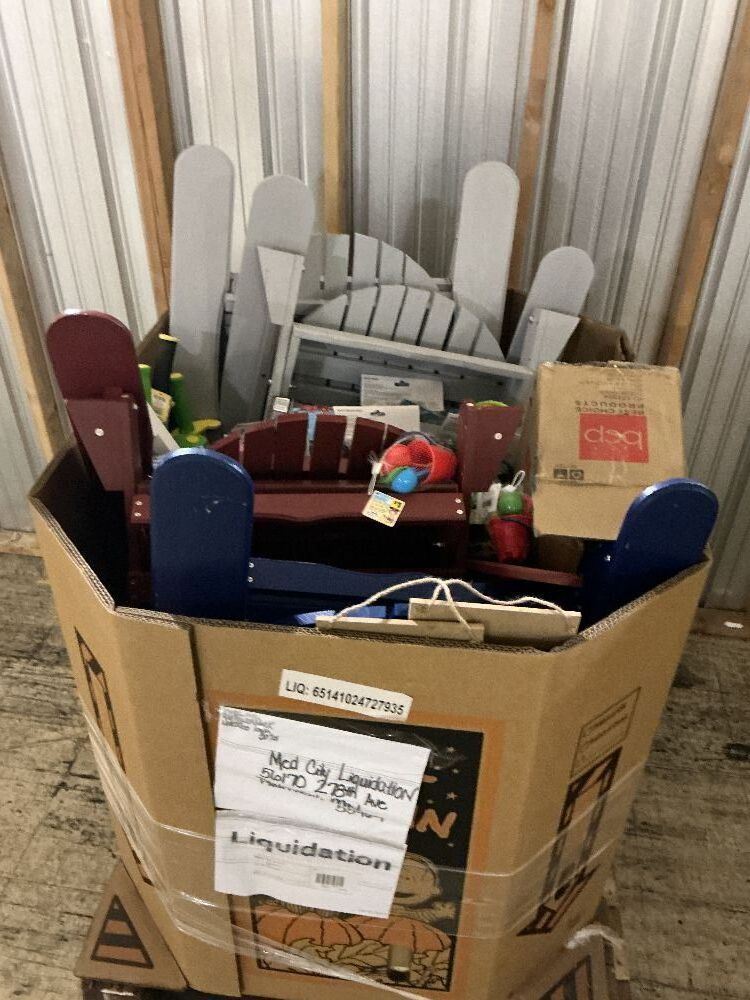 this pallet is pack to the brim with a little bit of everthing from cooking, home decor, furniture or anything else you could think of. please note will need truck to pick up pallet
