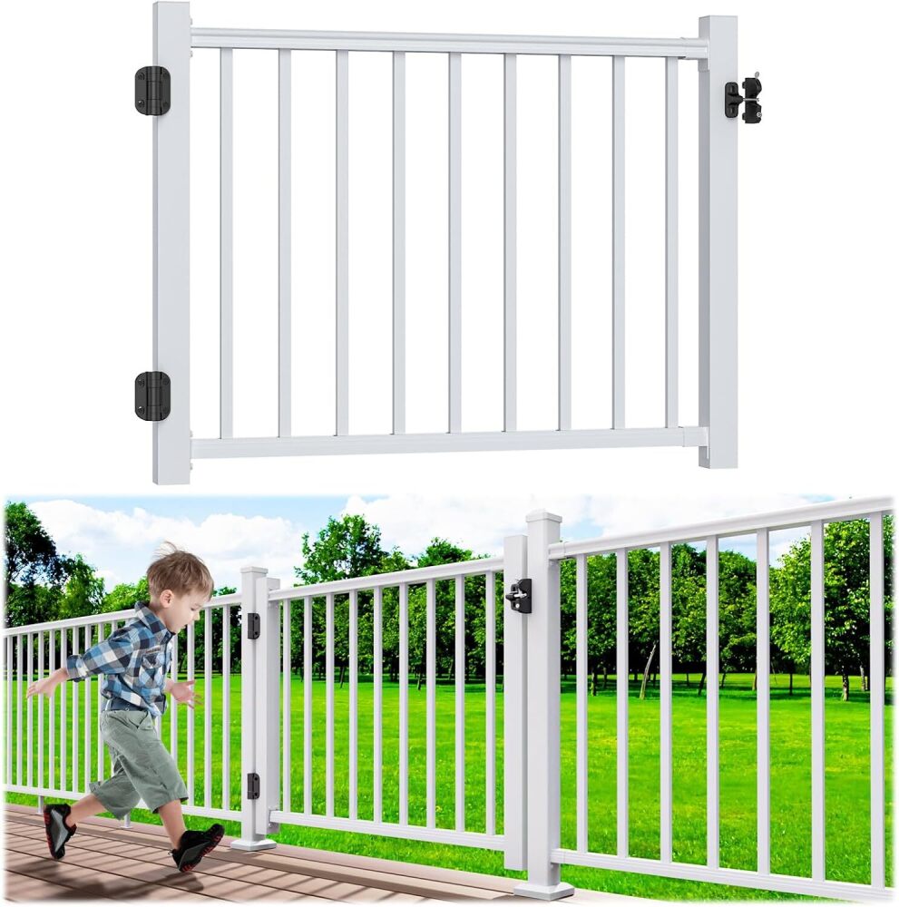 4 ft. W Aluminum Deck Gate Kit for 36". H Railing, Cuttable White Textured Powder-Coat Finish Outdoor Gate Kit with Latch and Auto-Closing Hinge for Deck, Patio, Garden, Yard, Porch