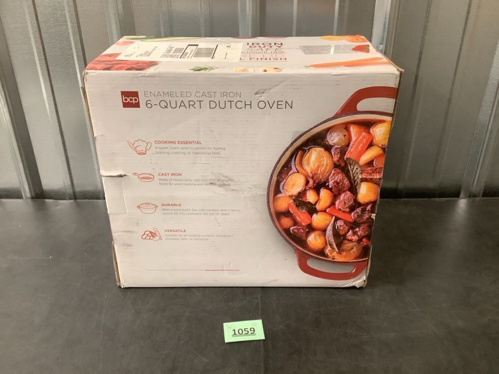 Cast-Iron Dutch Oven Kitchen Cookware w/ Enamel, Handles - 6qt