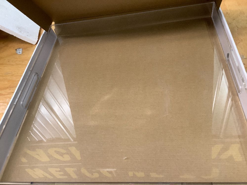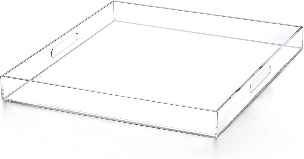 Clear Acrylic Ottoman Tray with Cutout Handles 20x20 Inch Over Sized Serving Tray, Organizer Rubber Boot Tray Decorative for Living Room Bedroom,Bathroom and Entryway Kitchen Tabletop