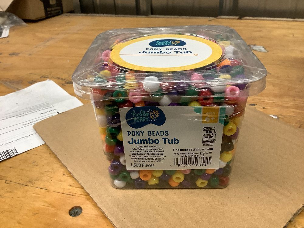 Pony Beads Jumbo Tub Case Pack - 4 Cases, 4 Tubs per Case, 1500 Pieces per Tub