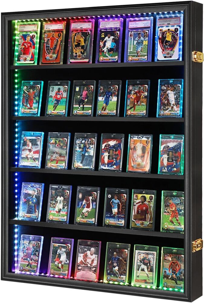 VERANI 35-Card LED Sports Star Card Frame, Lockable Shadow Box with Superior UV Protection, Remote-Controlled Lights for Baseball/Basketball/Football Trading Cards