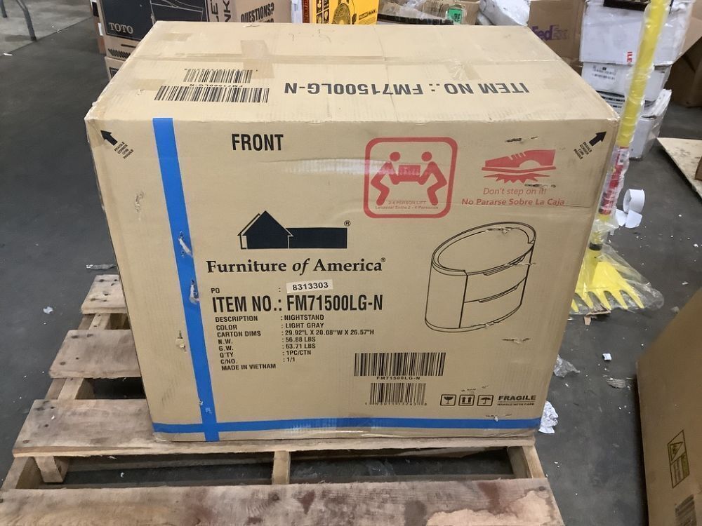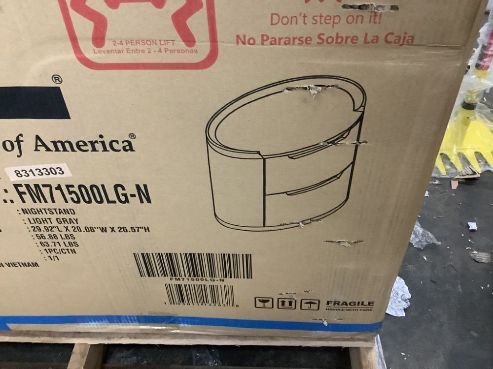Furniture of America Wilter Light Gray 2-Drawer 28 in. W Nightstand with Rounded Edges and Nickel Finish Stainless Steel Trim
