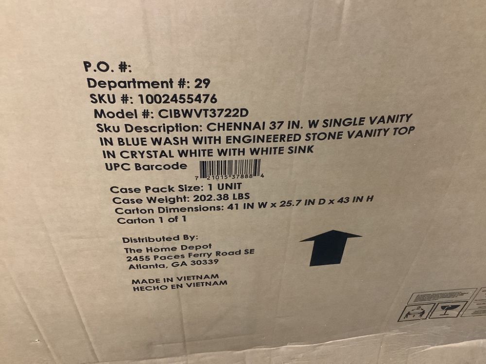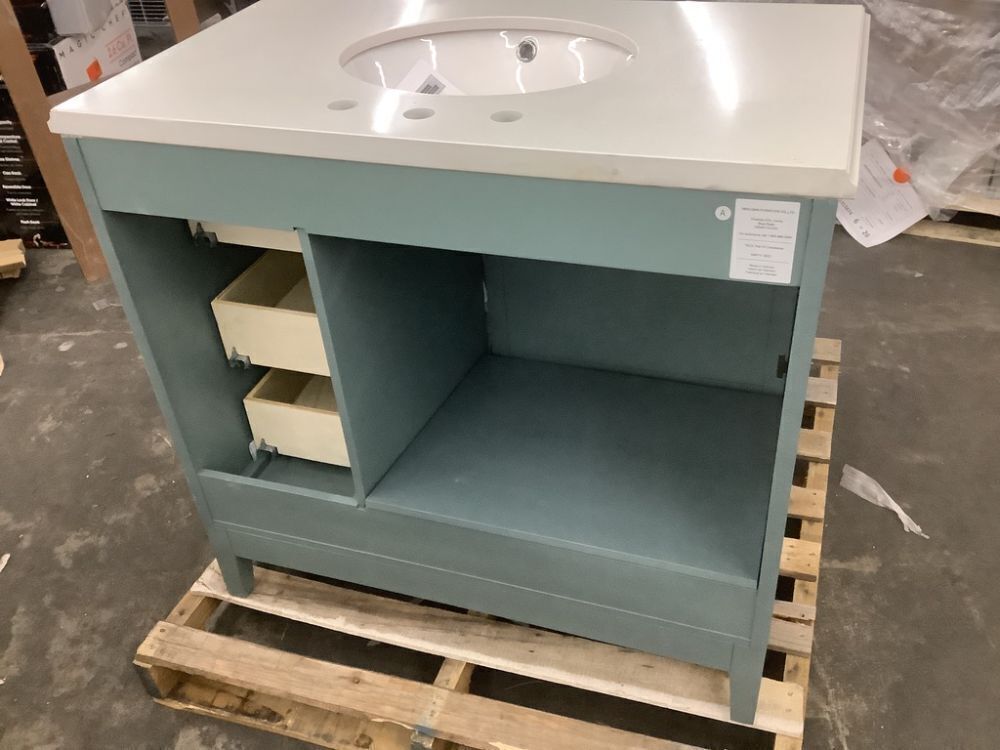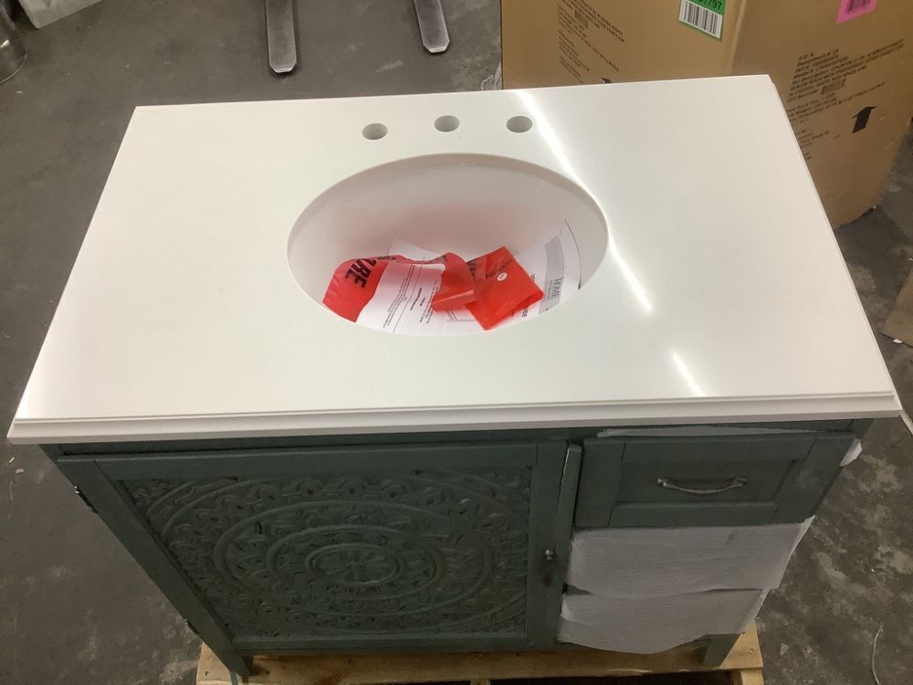 Home Decorators Collection Chennai 37 in. Single Sink Blue Wash Bath Vanity with White Engineered Stone Top