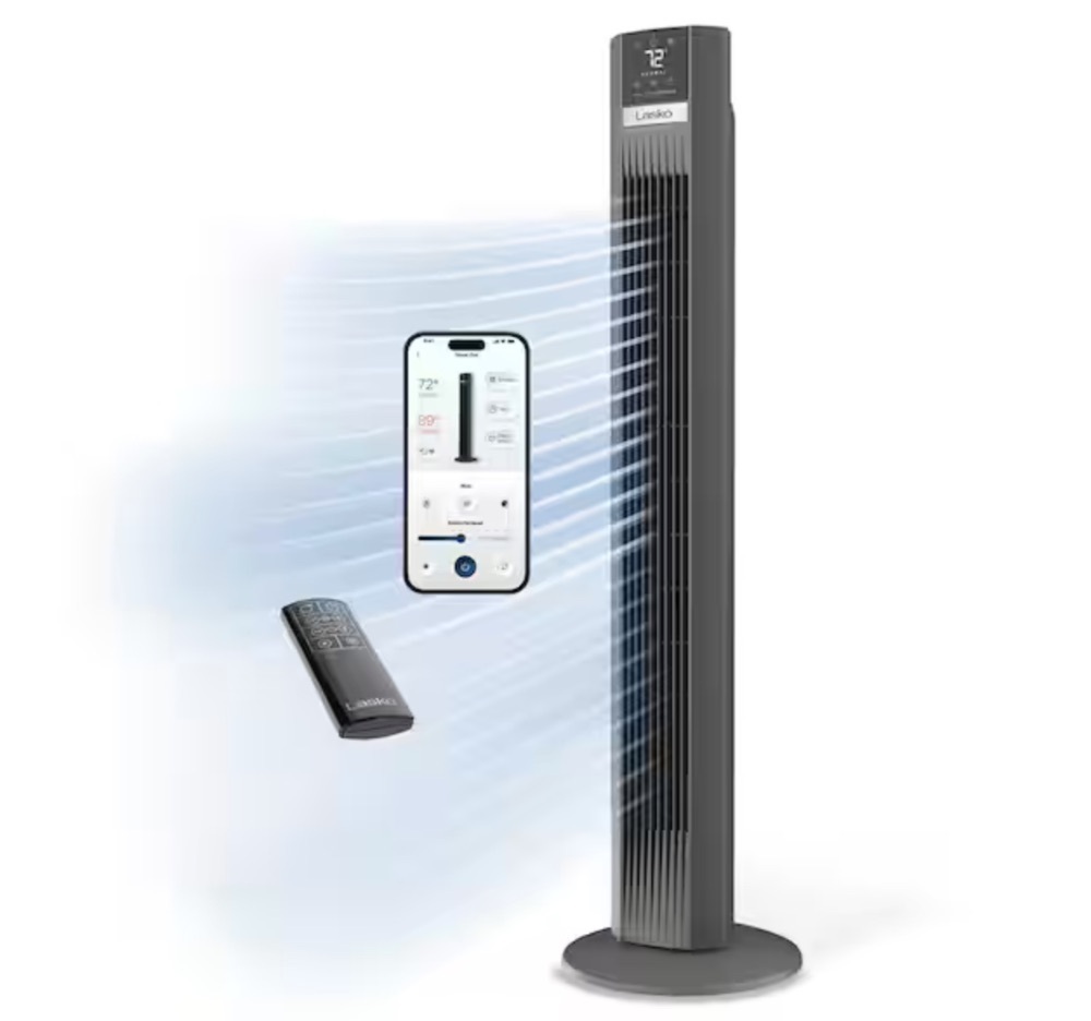 Lasko Xtra Air 48 in. 12-Speed Smart Tower Fan in Gray w/ DC Motor, Works w/ Alexa, Google, Whisper Quiet, Remote, 12 in. Dia