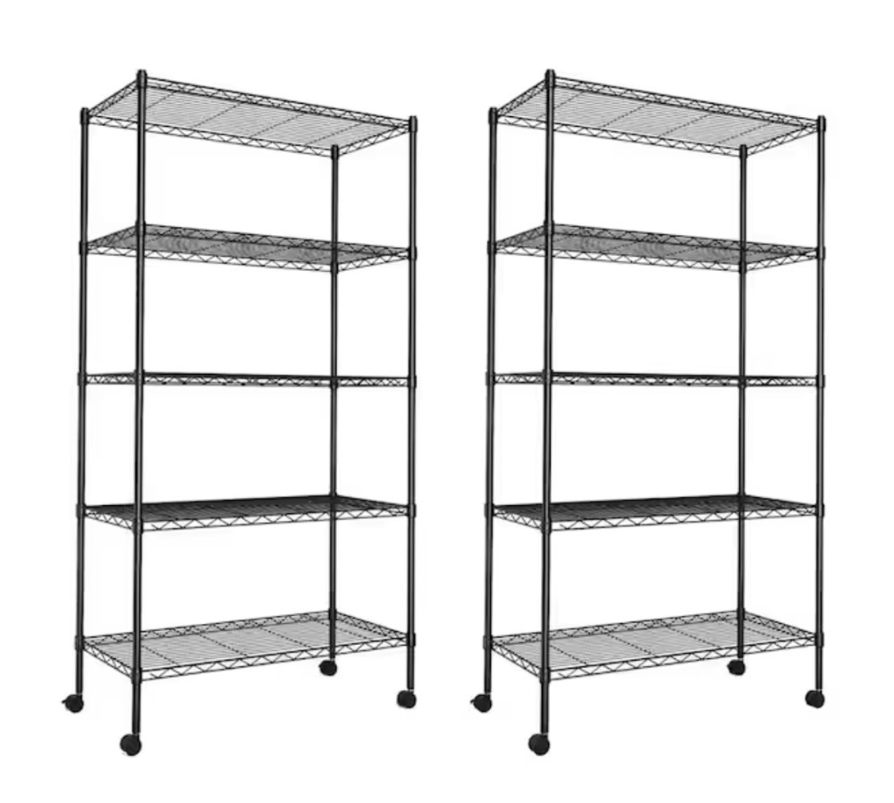 Otryad Heavy Duty 5-Shelf Storage Shelving Unit, 1250 lb. Loading Capacity, Adjustable Steel Organizer Wire Rack, Black, 2-Pack