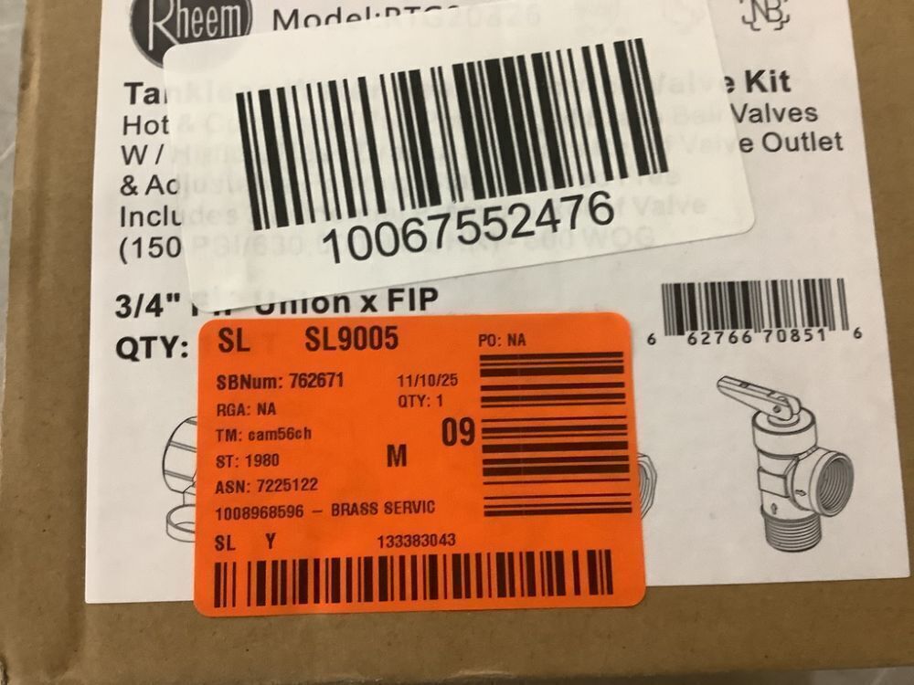 Rheem Brass Service Valves for Tankless Water Heaters
