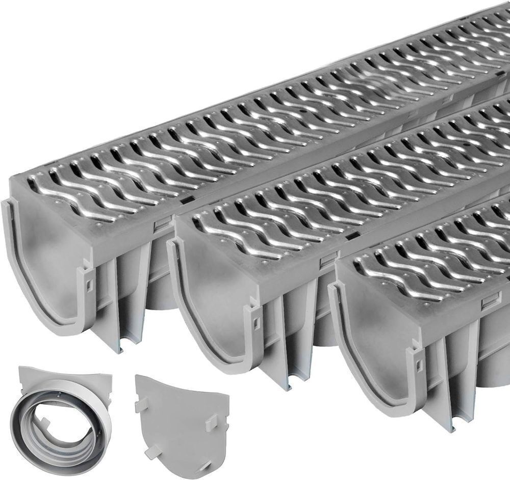 Trench & Driveway Channel Drain with Galvanized Steel Grate - 3 Pack