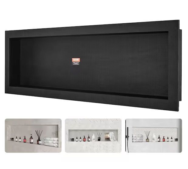 VEVOR 50 in. W x 16 in. H x 3.5 in. D Shower Niche Ready for Tile Single Shelf Organizer in Black