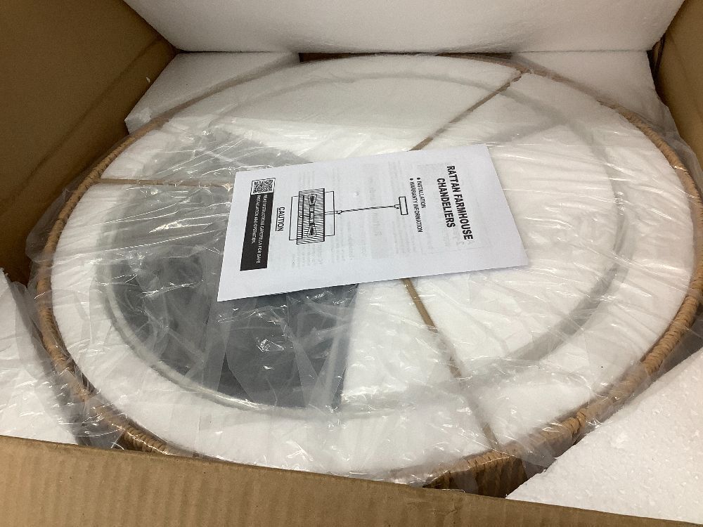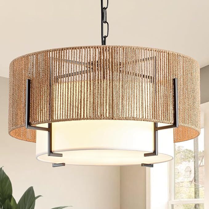4-Light Rattan Chandelier, 19.7" Boho Pendant Light with Fabric Shade, Farmhouse Rattan Hanging Ceiling Light Fixture for Dining Room, Living Room, Kitchen Island, Bedroom, Hallway, Foyer