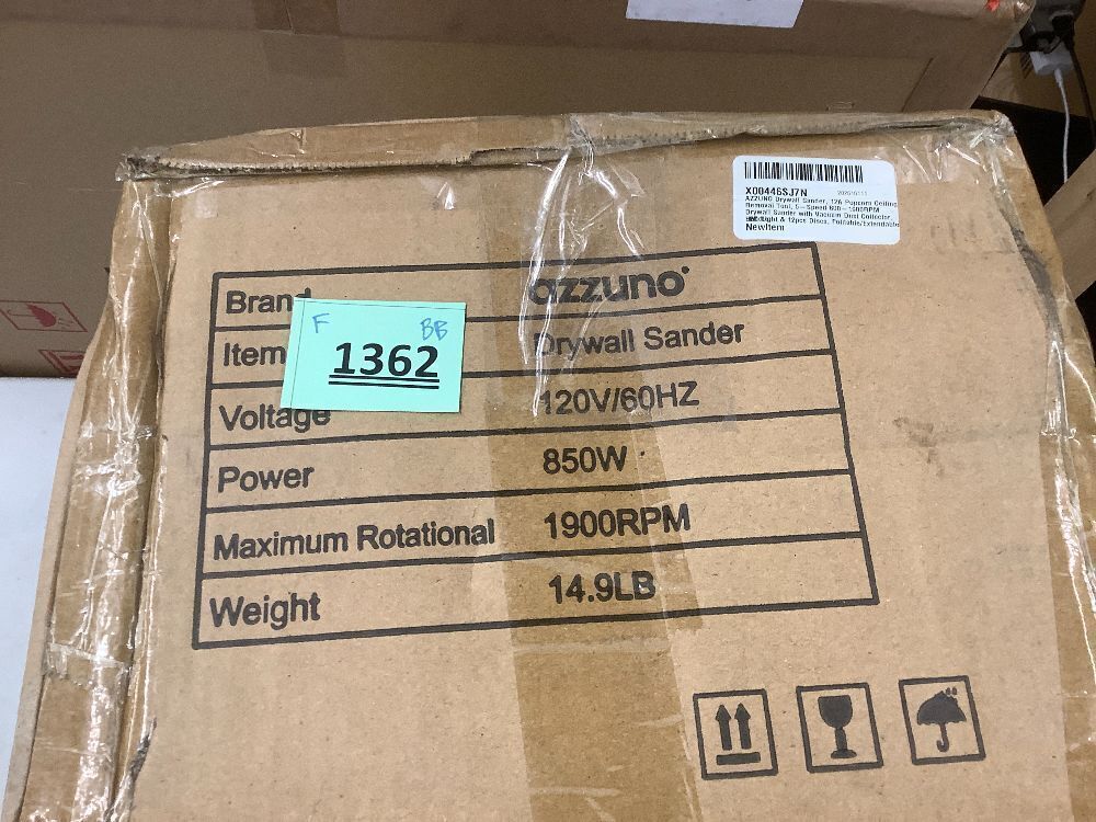 Drywall Sander with Vacuum Dust Collector, AZZUNO 12A Popcorn Ceiling Removal Tool with 5 Variable Speed 800-1900RPM, LED Light, Foldable & Extendable Handle, 12pcs Sanding Discs