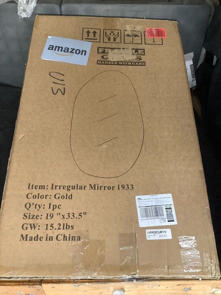 Irregular Wall Mirror Asymmetrical Mirror, Decorative Wall Mirror Golden Wood Framed, Wall Mounted Mirror for Bathroom Living Room Entryway Bedroom Hallway