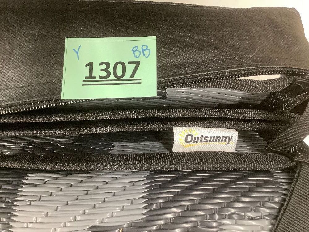 Outsunny RV Mat Outdoor Patio Rug / Large Camping Carpet with Carrying Bag 8' x 10' Waterproof Plastic Straw Reversible Black Gray Geometric