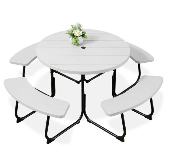 8-Person Circular Picnic Table w/ Umbrella Hole, 4 Benches