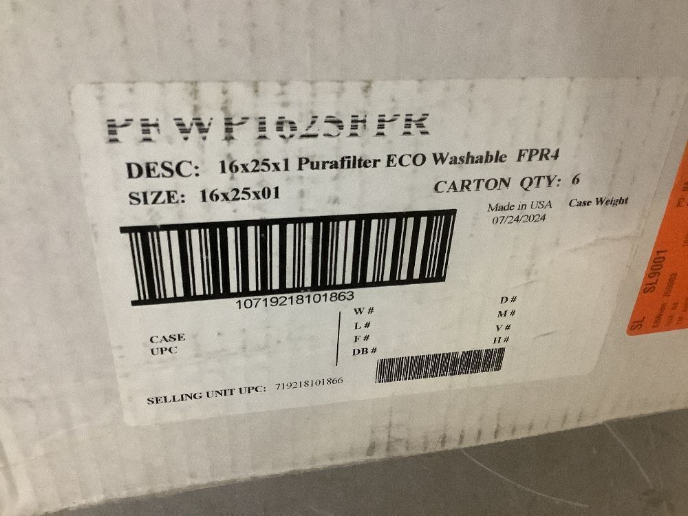 Lot of (2) 6 Pack 16 in. x 25 in. x 1 ECO Washable Air Filter FPR4