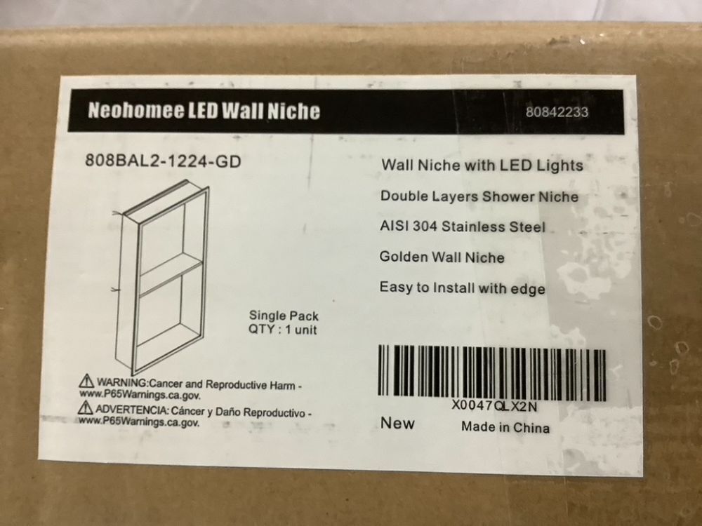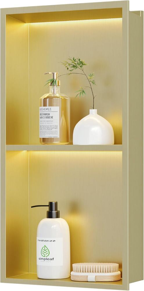 Neohomee 2-Tier 12x24 Shower Niche with LED Light Strips, Gold