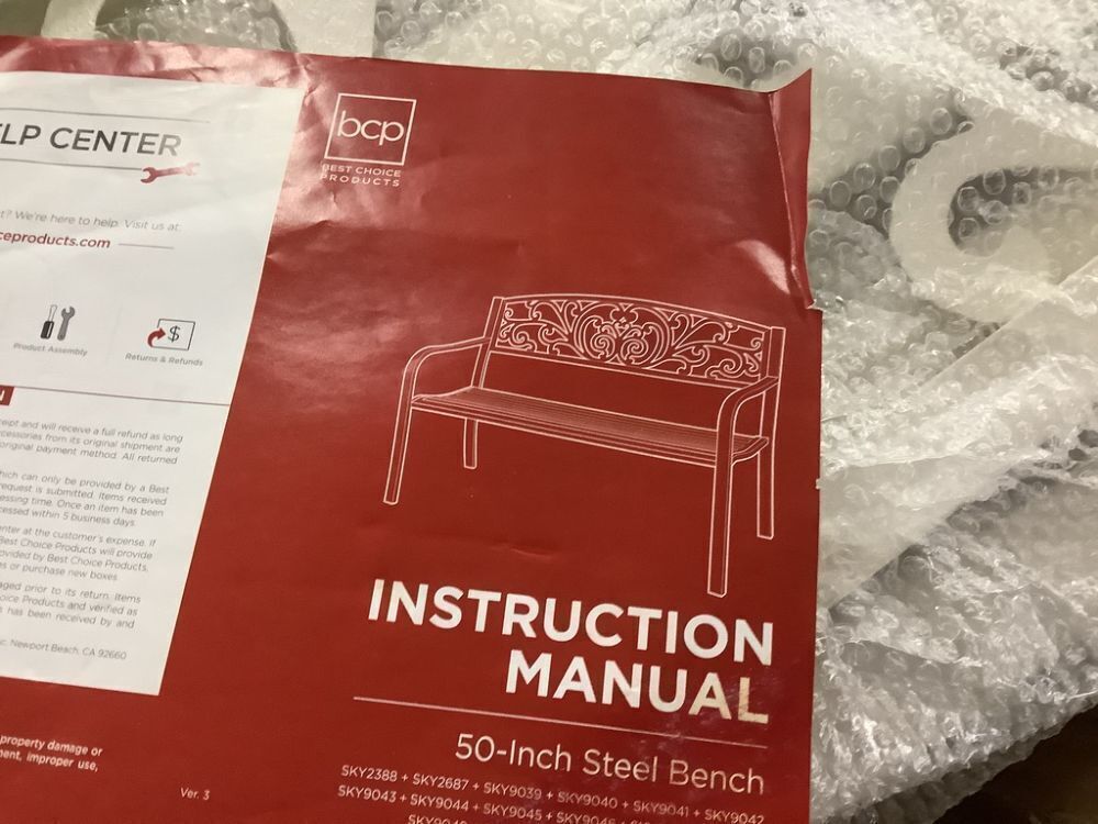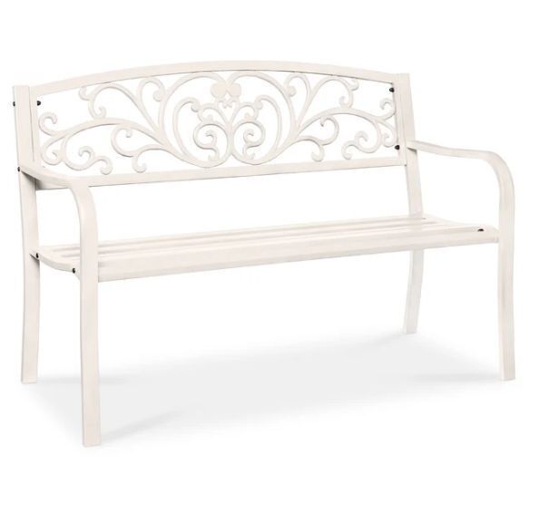 Steel Bench for Outdoor, Patio, Garden w/ Floral Design - 50in