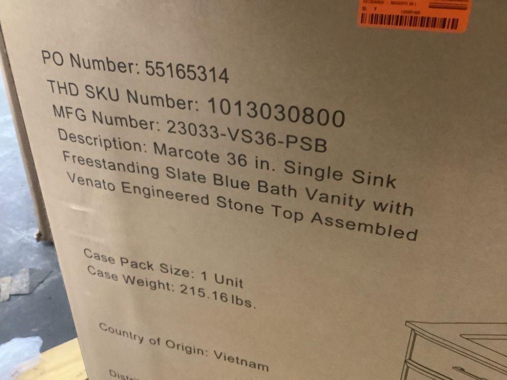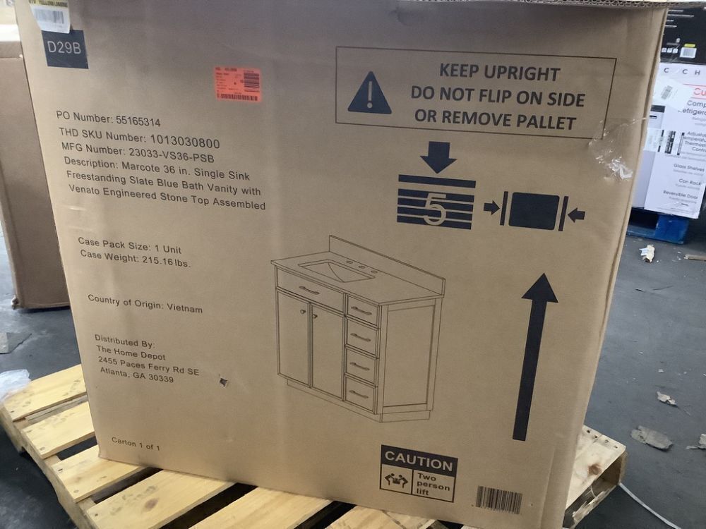 Glacier Bay Marcote 36 in. Single Sink Freestanding Slate Blue Bath Vanity with Venato Engineered Stone Top