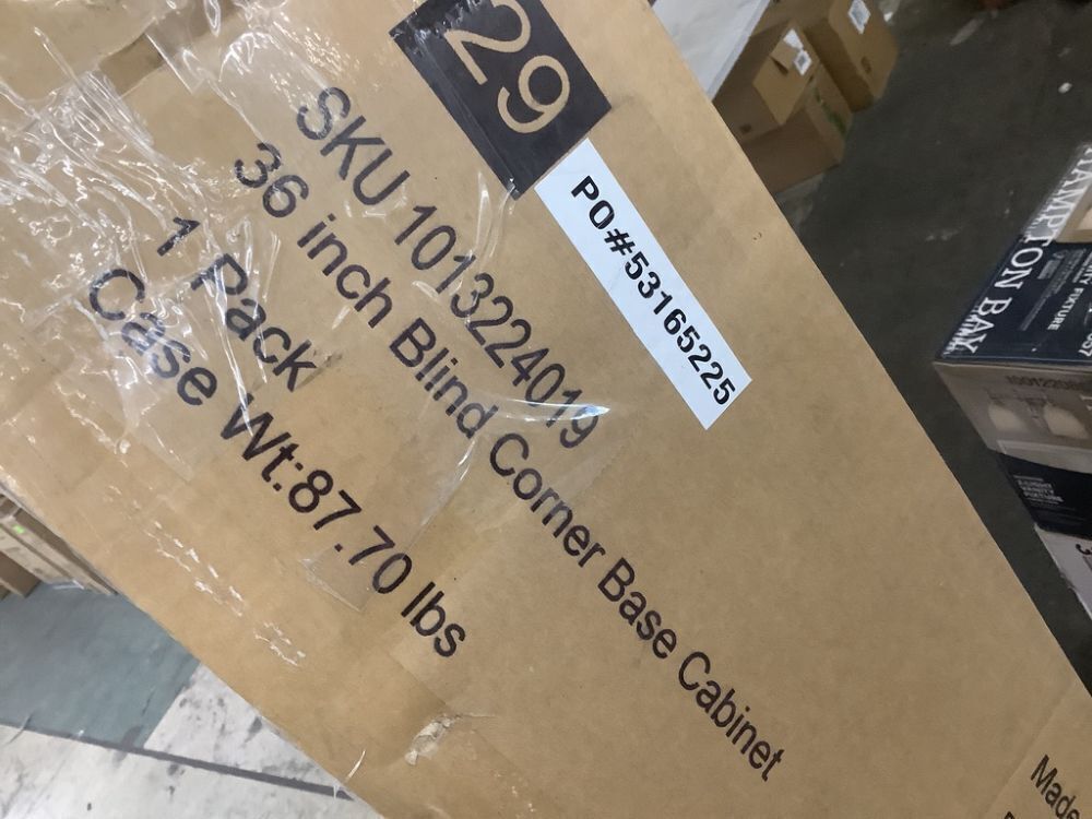 Hampton Bay Avondale 36 in. W x 24 in. D x 34.5 in. H Ready to Assemble Plywood Shaker Corner Blind Kitchen Cabinet in White Oak