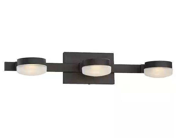 Home Decorators Collection Montrose 23.75 in. 3-Light Contemporary Bronze Dimmable Bathroom Vanity Light with Etched Glass Shade