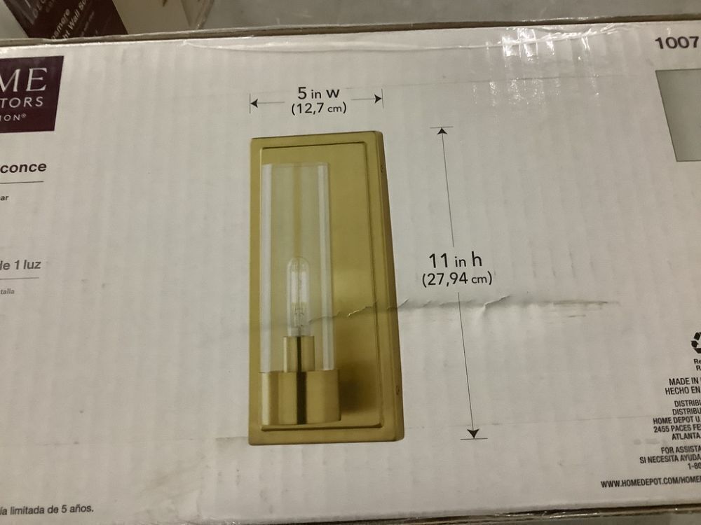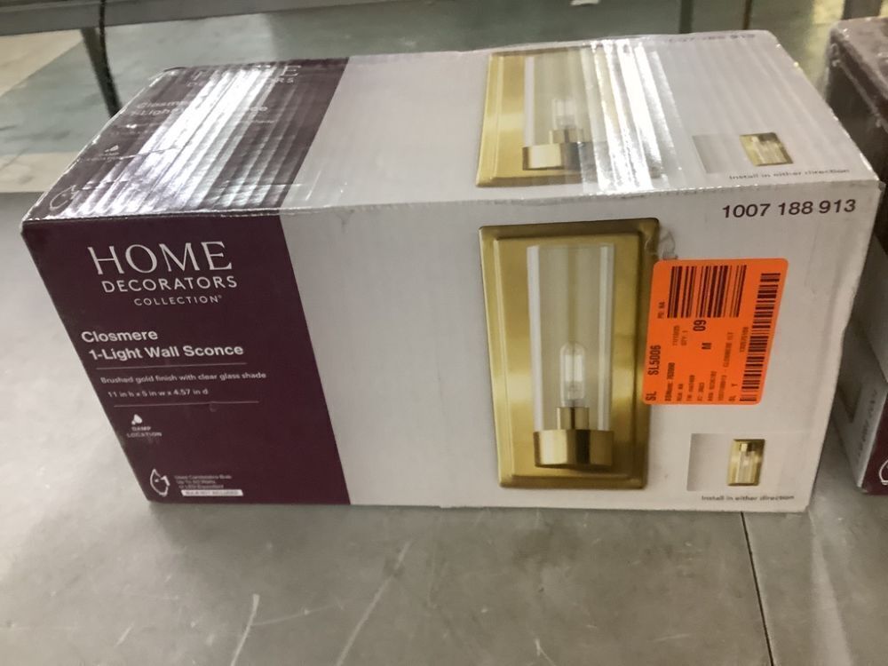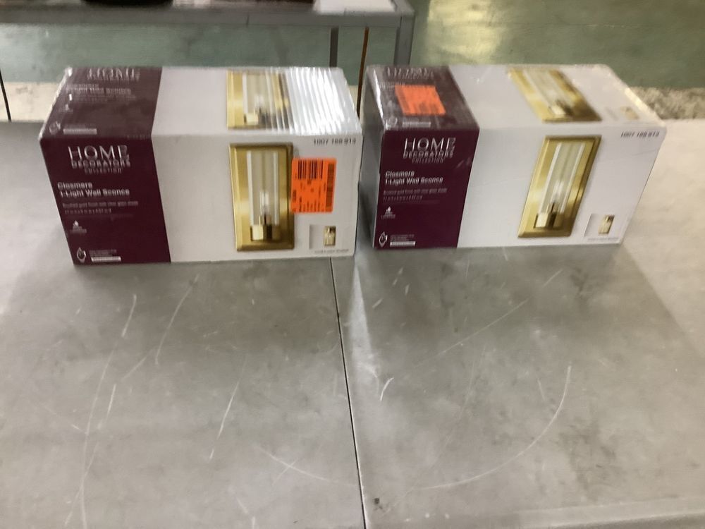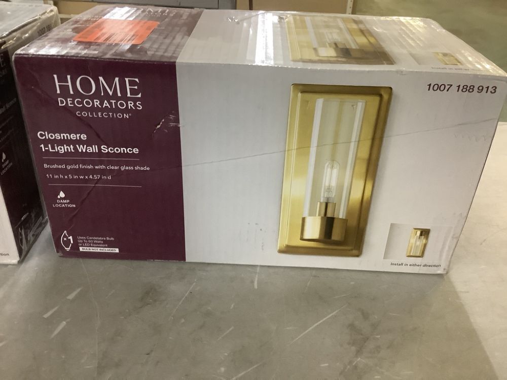 Lot of (2) Home Decorators Collection Closmere 5 in. 1-Light Brushed Gold Mid-Century Modern Wall Sconce with Clear Glass Shade