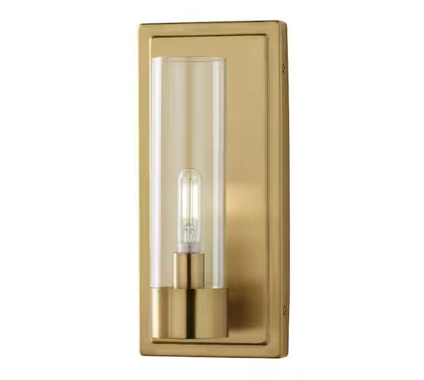 Lot of (2) Home Decorators Collection Closmere 5 in. 1-Light Brushed Gold Mid-Century Modern Wall Sconce with Clear Glass Shade